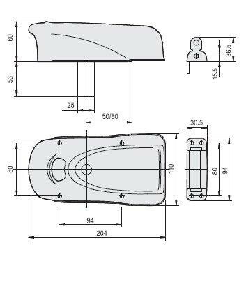 Elektrický masivní horizontální zámek 12VAC; 12VA pro dvoukřídlé i jednokřídlé brány slouží k automatickému uzamčení brány a pro zpevnění křídla v zavřeném stavu. Zámek s kyvným uložením zamykacího zařízení pro brány do hmotnosti 2000 kg. Není nutné přidávat spodní zarážku do země, zámek vyrovná případné dilatace brány.