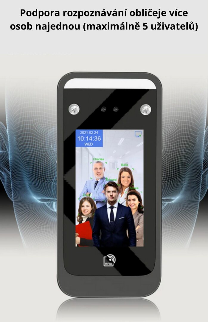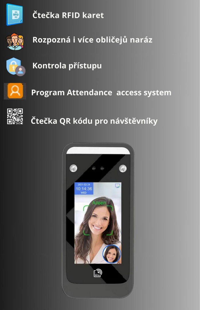 AI06 Wi-FI docházkový systém s funkcí rozpoznávání obličeje a čtečkou karet.