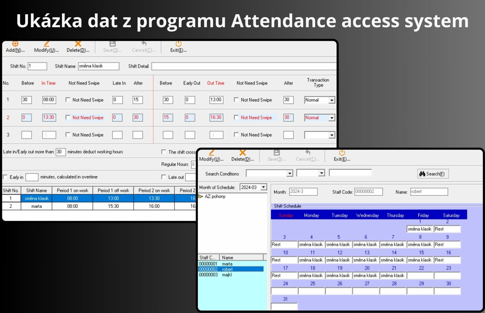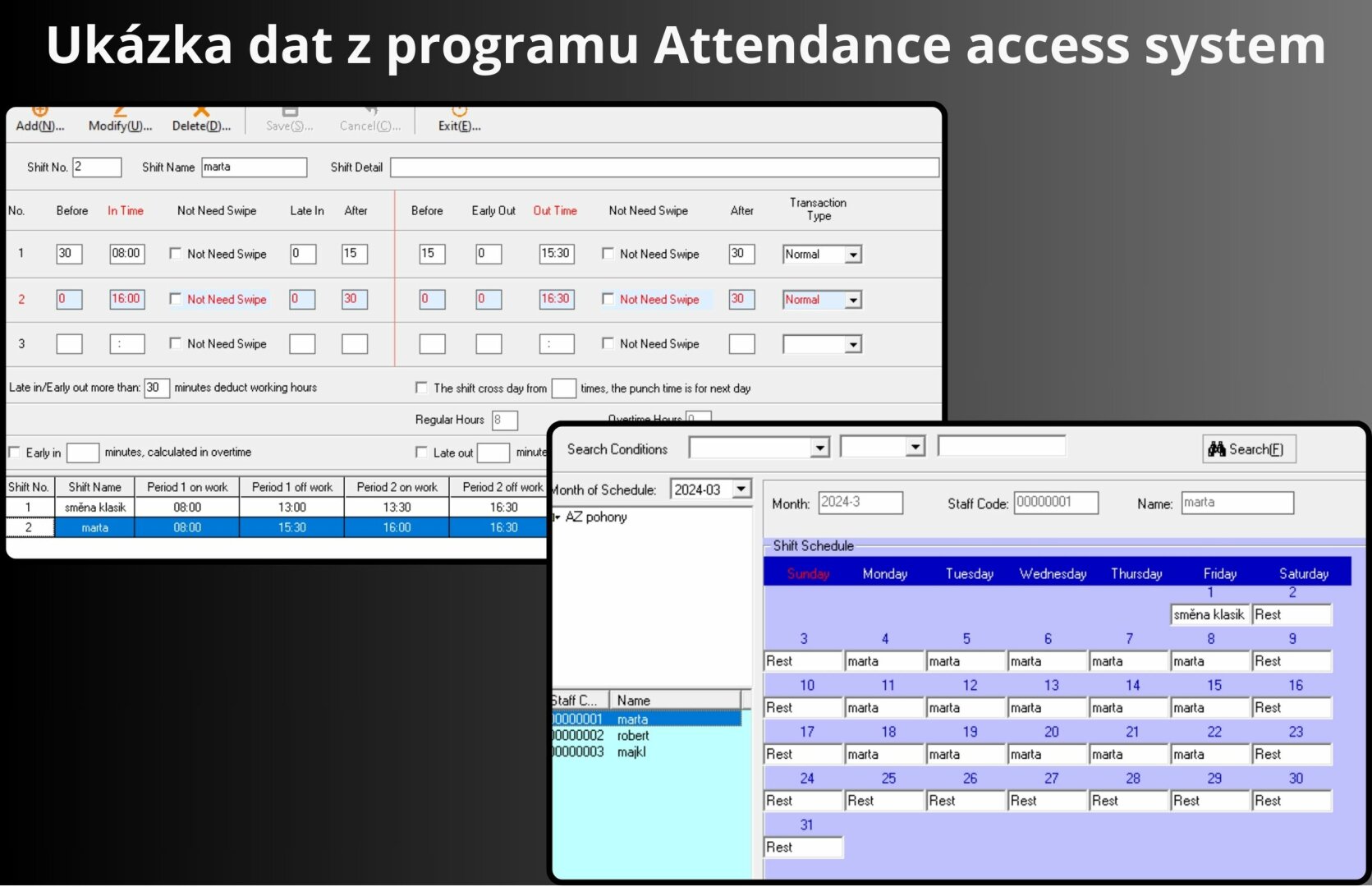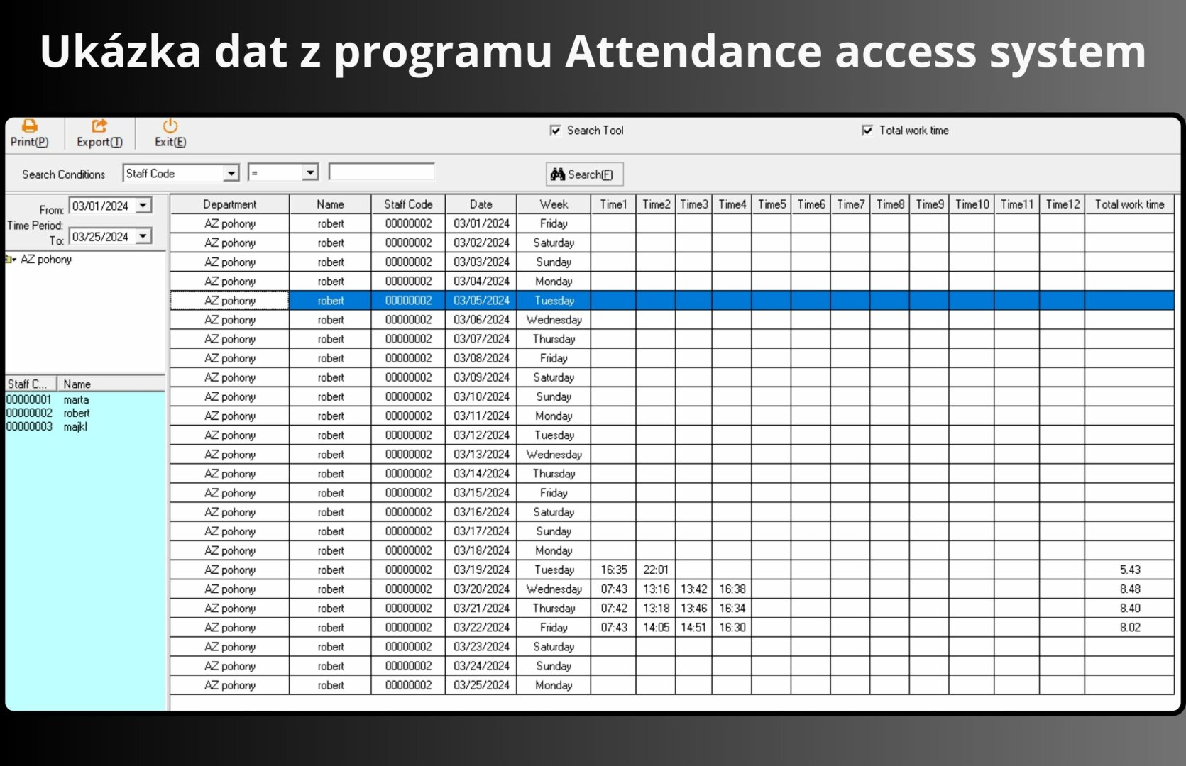 Upozornění: docházkový systém, aplikace, cloud i mobilní aplikace jsou pouze v anglickém jazyce.