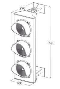 Semafor tříkomorový červená/žlutá/zelená, vč. stavitelných úchytů na zeď s kovovým tělem a plošným spojem s 25 + 25 + 25 svítivými LED diodami. Průměr komory 120 mm. Napájecí napětí 230 V.