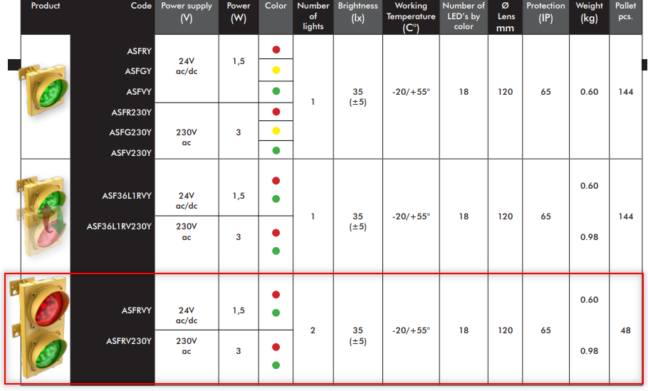 ASFRVY - průmyslový dvoukomorový semafor LED, 24 VDC/VAC