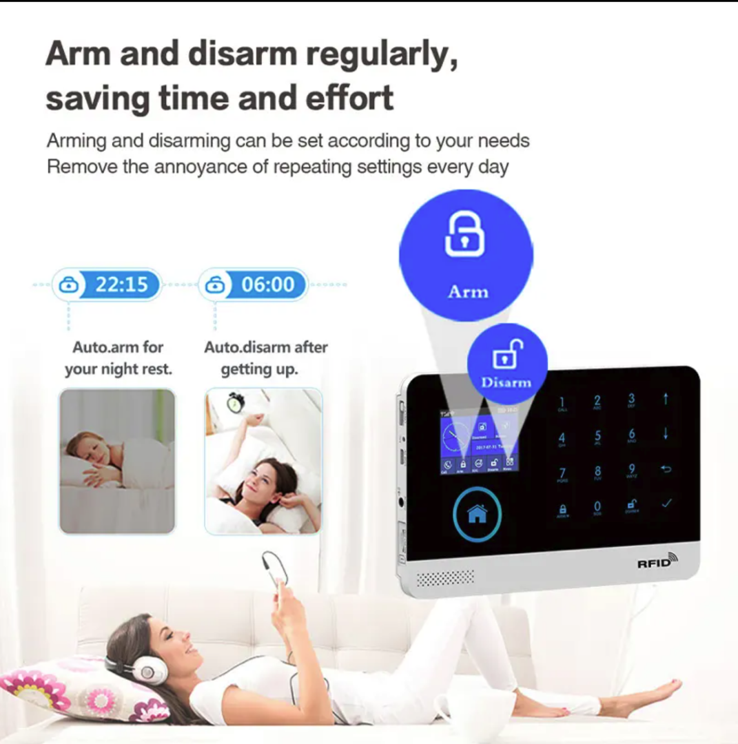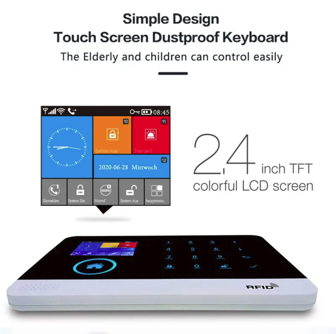 S pracovní napětím 110~240VAC a vstupním výkonem 12V DC/1A je tento alarm navržen pro jednoduché zapojení a pohodlné používání v domácím prostředí.