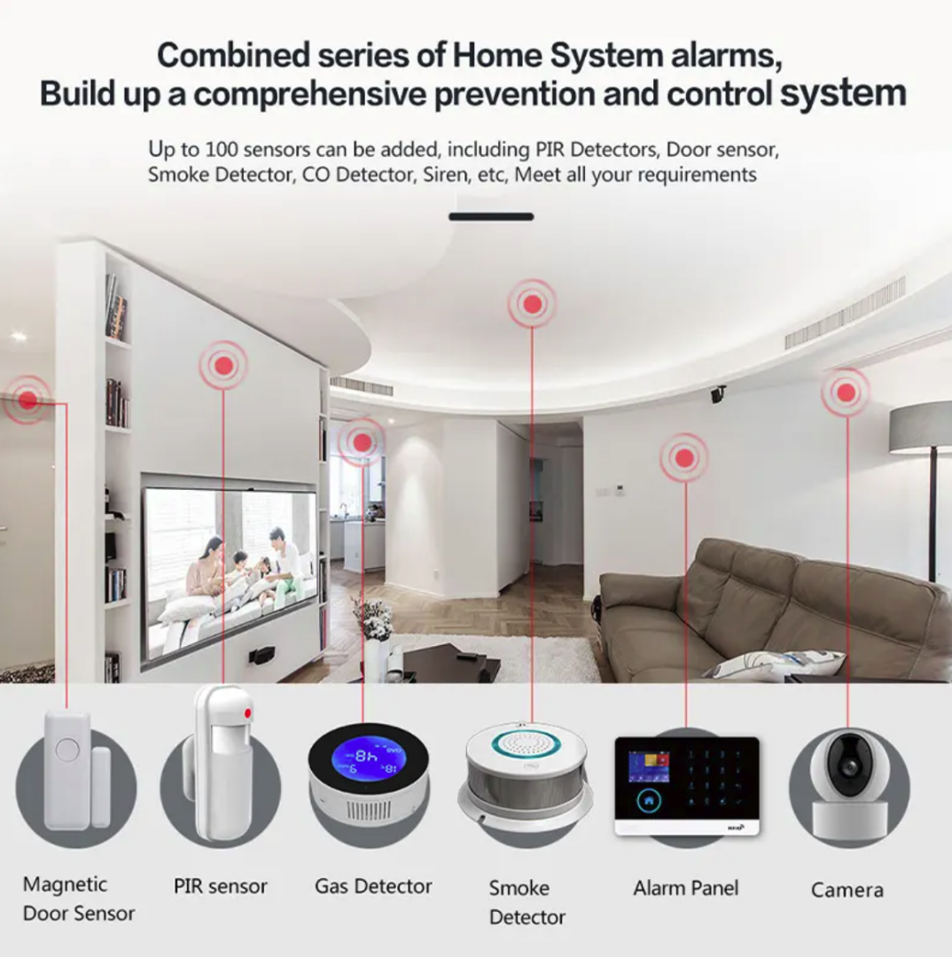 Podporuje WiFi, GPRS a GSM sítě, což zaručuje, že bezpečnostní systém zůstane připojen za všech okolností. Připojení k WiFi na frekvenci 2,4G a GSM frekvenci 900/1800/850/1900 MHz pak umožní spolehlivou komunikaci.
