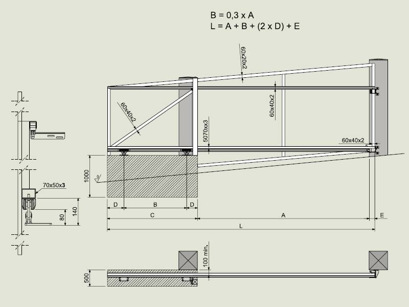 Sestava pro samonosnou posuvnou bránu do hmotnosti 450 kg je sada konstrukčních prvků pro výrobu brány ve svahu, kde se brána odsouvá na část pozemku, která je níže. Nyní akce - SLEVA 500 Kč při nákupu kování a pohonu pro posuvnou bránu. Více informací o akci v najdete popisu produktu.