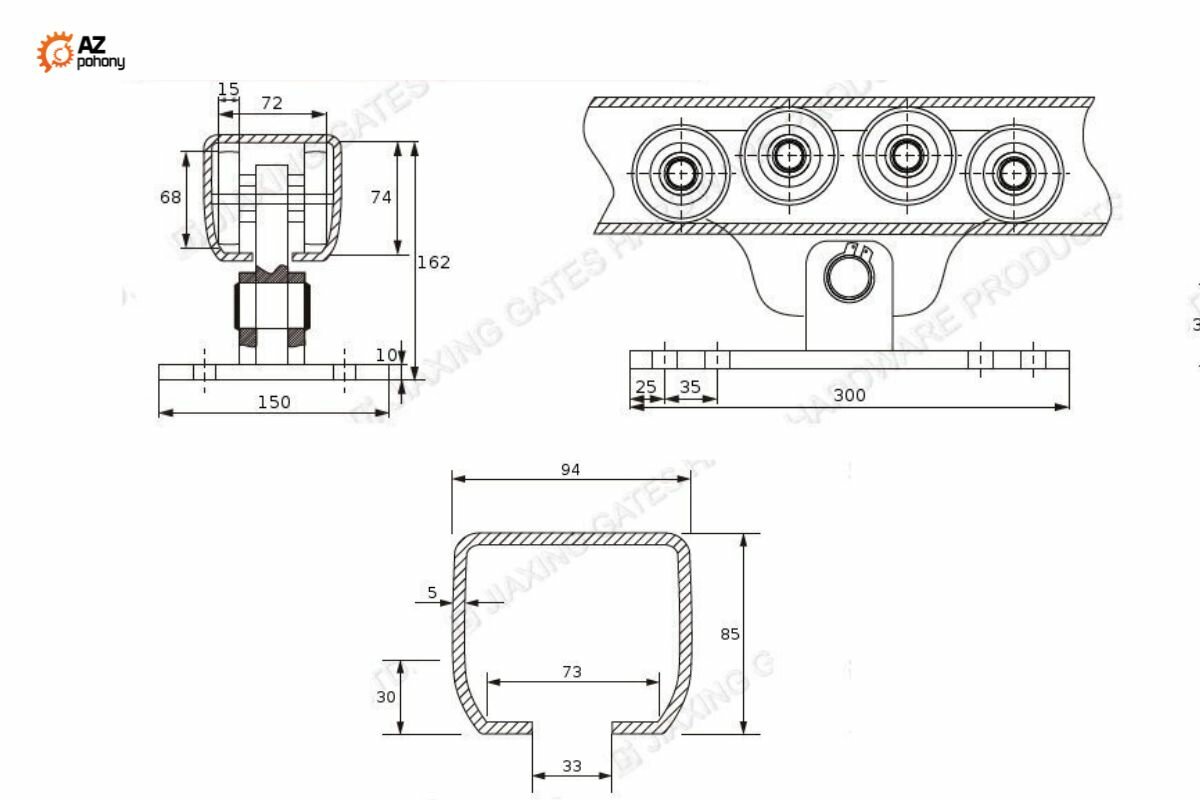 Kování na vrata Kování na posuvná vrata Samonosné brány Sestavy samonosných bran s C profilem