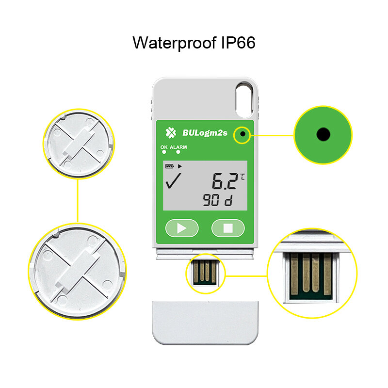 Monitorování teploty a vlhkosti při přepravě, skladování a distribuci potravin, léčiv, chemikálií a dalších citlivých produktů.