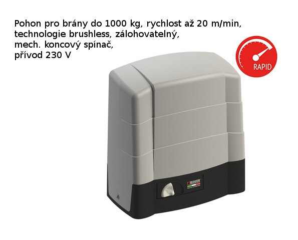 Tento motor se již dodává jen s magnetickými koncovými spínači ve verzi BH30/1004. Jedná se o kvalitní pohon Italského výrobce pohonů s dlouhodobou zkušeností ve výrobě pohonů pro brány a vrata. Tělo pohonu je vyrobeno z kvalitních materiálů, které zajistí maximální životnost pohonu ve všech klimatických podmínkách. Všechny díly v převodovce jsou železné. BG30/1003 je určen pro intenzivní provoz!
