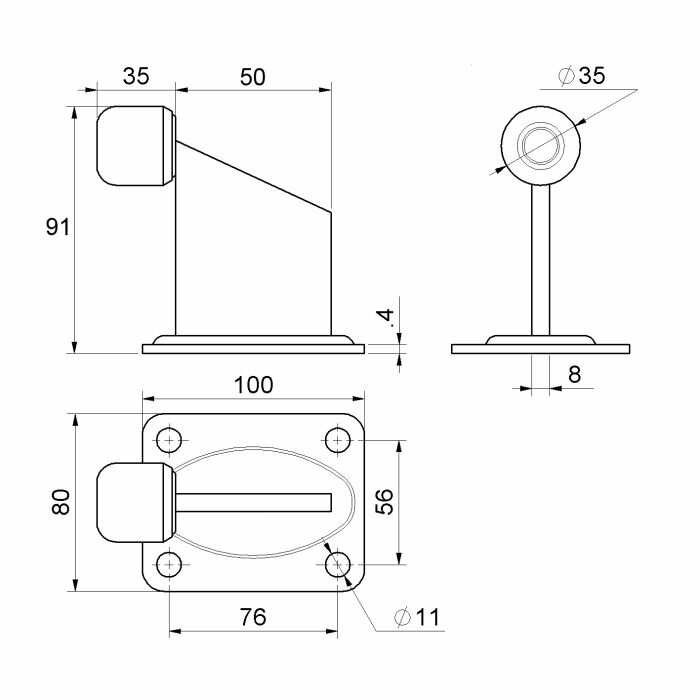 C382P Doraz Combi Arialdo na bránu, plotna 100 x 80 mm