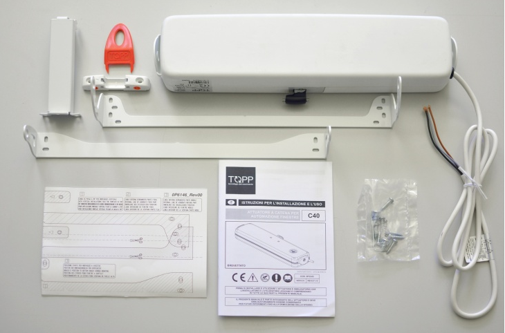 Elektrický okenní pohon C40 je spolehlivý, elegantní a uspokojí i náročné uživatele. Volbou správné barvy získáte pro své automatizované okno estetický a plně funkční prvek. Barvy pohonu je možné volit mezi černou, šedou nebo oblíbenou bílou. Stejnou barvu pohonu budou mít i montážní konzolky. Barvy přívodního kabelu pro šedé a černé pohony jsou černé a bílé pro bílé pohony. Pohon je vsazen do pevné a profesionálně zpracované plastové skříně. Odolný řetěz z antikorozní oceli vyúsťuje v centrální části pohonu (mezinárodní patent) a snese zátěž 400 N, což představuje u střešního okna váhu cca 74 kg, u svislého okna váhu cca 90 kg. Standardní otočná kovová konzola ve tvaru U je vhodná pro všechny typy oken, a dovoluje pohonu naklápění dle jeho potřeb. Koncové spínače jsou řešeny elektronicky. Funkce automatického odpojení při přetížení vždy správně dotěsní výplň v rámu okna. Funkce zpomalení pohonu před dosednutím při zavírání garantuje maximálně tiché zavření okna a šetří mechaniku pohonu.