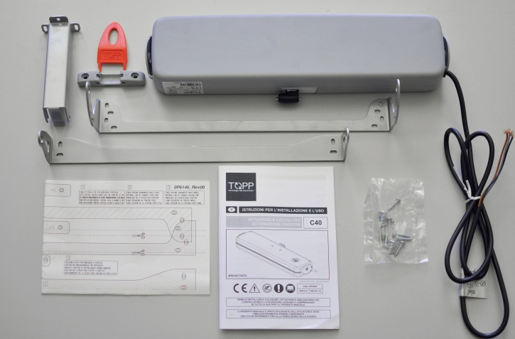 Elektrický okenní pohon C40 je spolehlivý, elegantní a uspokojí i náročné uživatele. Volbou správné barvy získáte pro své automatizované okno estetický a plně funkční prvek. Barvy pohonu je možné volit mezi černou, šedou nebo oblíbenou bílou. Stejnou barvu pohonu budou mít i montážní konzolky. Barvy přívodního kabelu pro šedé a černé pohony jsou černé a bílé pro bílé pohony. Pohon je vsazen do pevné a profesionálně zpracované plastové skříně. Odolný řetěz z antikorozní oceli vyúsťuje v centrální části pohonu (mezinárodní patent) a snese zátěž 400 N, což představuje u střešního okna váhu cca 74 kg, u svislého okna váhu cca 90 kg. Standardní otočná kovová konzola ve tvaru U je vhodná pro všechny typy oken, a dovoluje pohonu naklápění dle jeho potřeb. Koncové spínače jsou řešeny elektronicky. Funkce automatického odpojení při přetížení vždy správně dotěsní výplň v rámu okna. Funkce zpomalení pohonu před dosednutím při zavírání garantuje maximálně tiché zavření okna a šetří mechaniku pohonu.