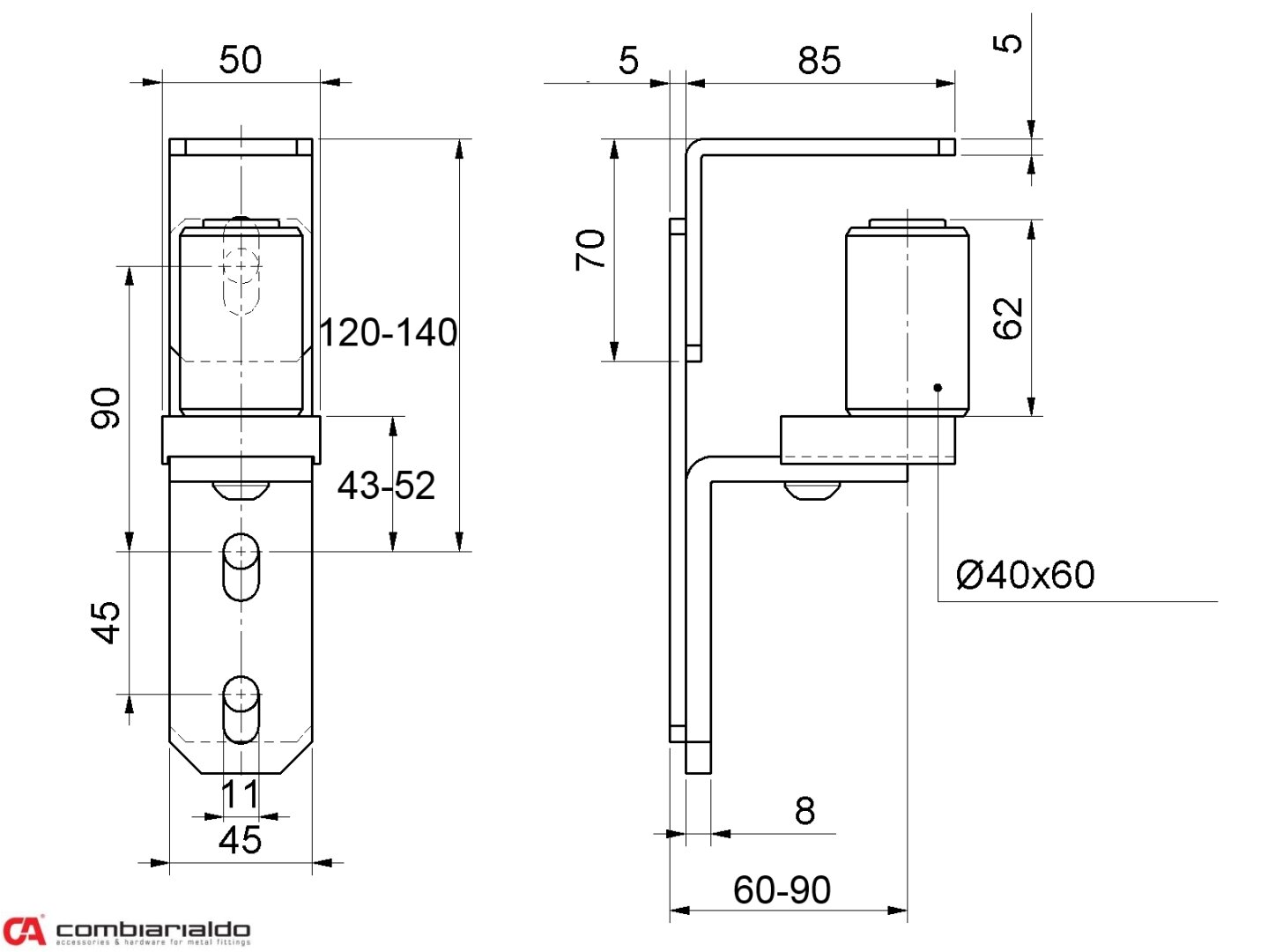 C458 Horní vedení brány Combi Arialdo s nylonovou kladkou 40 x 60 mm