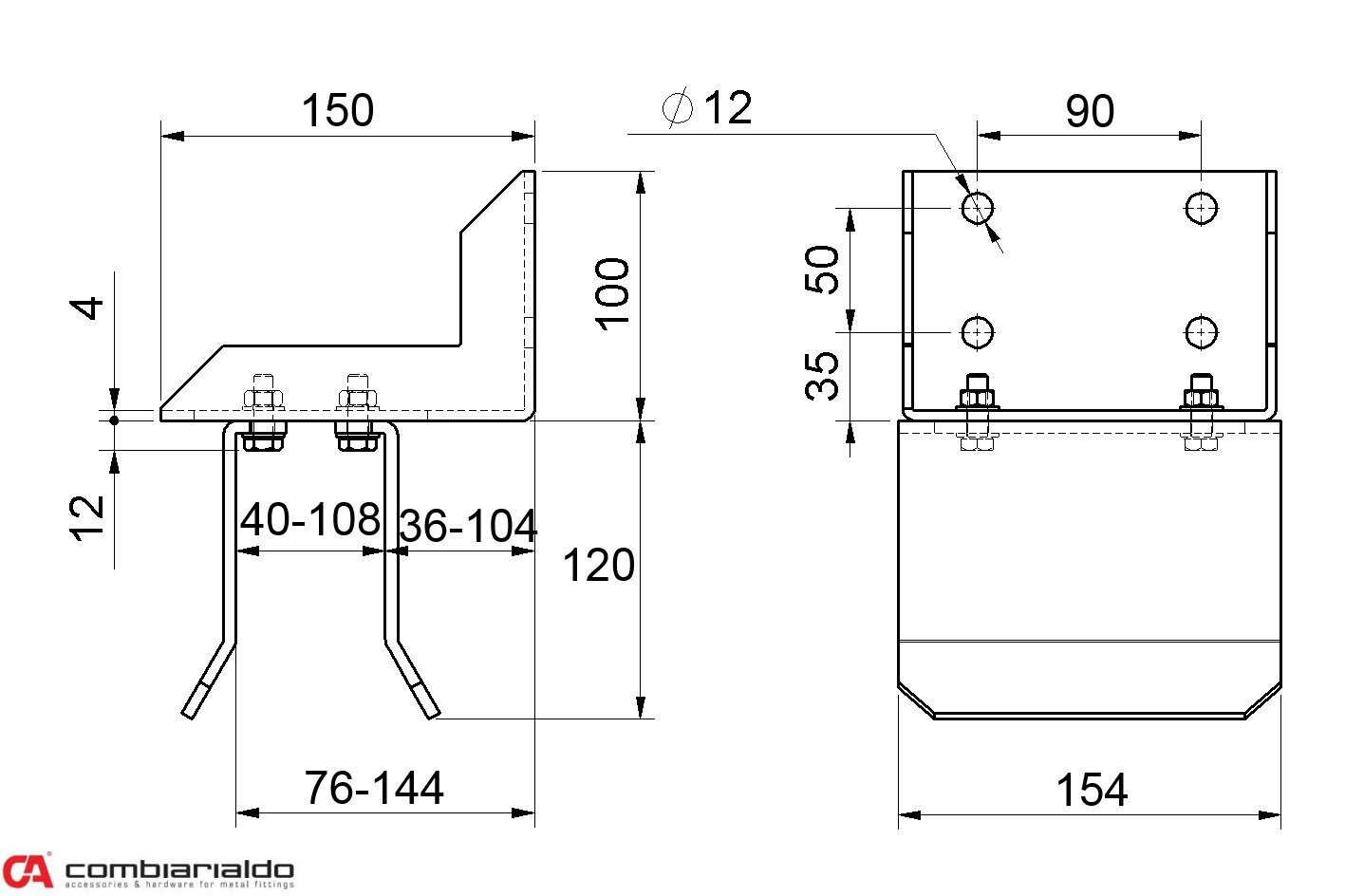 C465M Kapsa Combi Arialdo na bránu horní stavitelná 155 x 150 x 220 x 4 mm