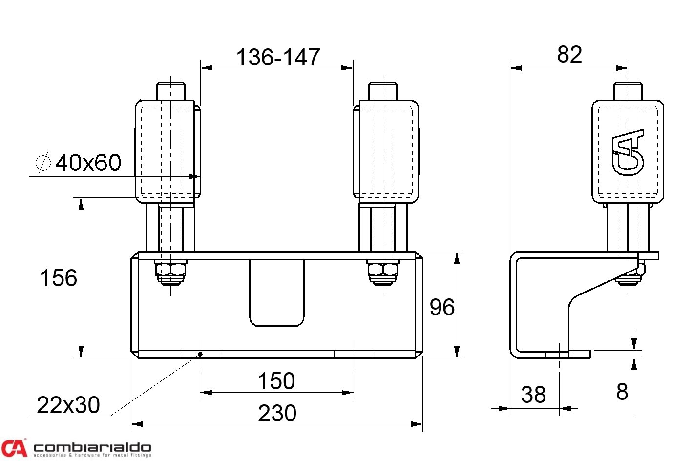 Horní vedení od výrobce Combi Arialdo. Povrchová úprava- pozink. Použití pro posuvné brány.