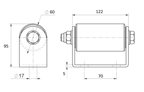 C571P Nylonový vodící váleček ø60, H-122mm, pro horní vedení posuvné brány