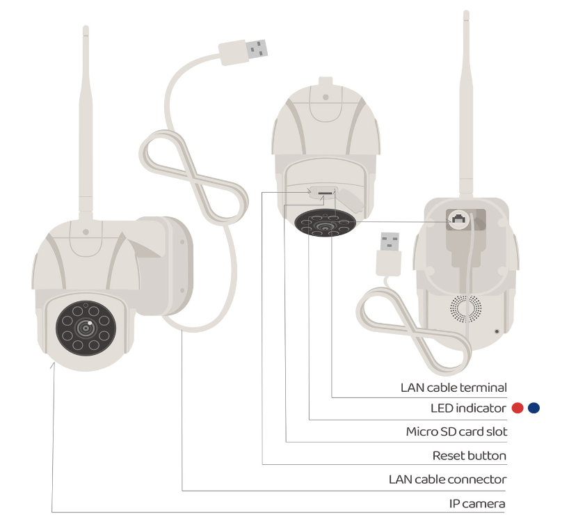 Tato kamera má integrovaný slot na standartní paměťové karty MicroSD (není součástí balení, max 128GB) a podporuje autonomní nahrávání ve smyčce, bez nutnosnti dalších záznamových zařízení. Videozáznamy z detekce pohybu lze přehrát pomocí funkce přehrávání videa. Tato funkce je možná pouze s kartou MicroSD. Pro maximální bezoečnost má vestavěné infračervené světlo a je tedy vhodná i pro noční režim, který umožňuje vidět až do 15m a poskytuje Vám tak veškerou ochranu. Hlava motoru umožňuje kameře otáčet se a zachytit plný 350° horizontální pohled a 95° vertikální pohled.