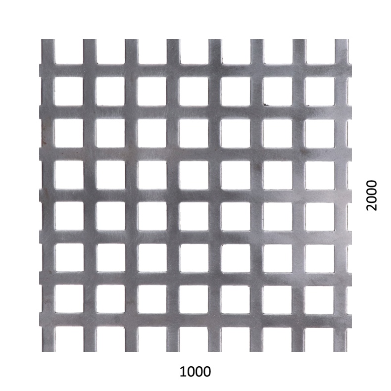 Děrovaný plech čtvercový řadový Fe, otvor: 10x10 mm, rozteč: 14 mm, (2000x1000x1,0 mm).