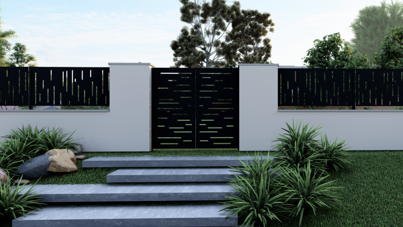 Designová kovová výplň, laserem vypálený vzor 8211, rozměr 1000x2000x2,0 mm, výška výpalku 30,1 mm