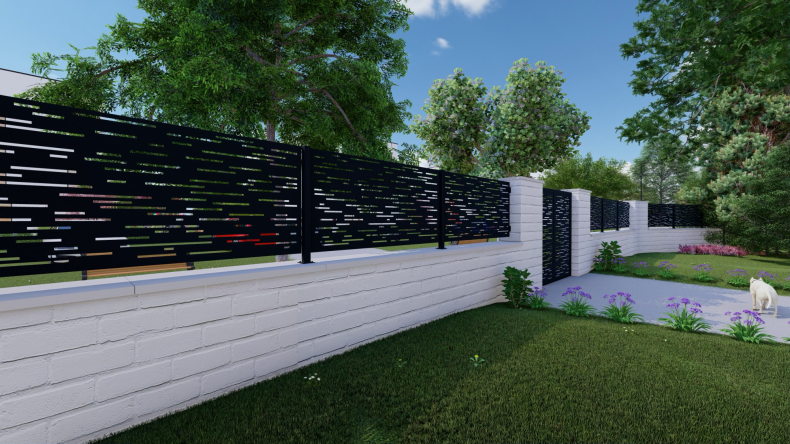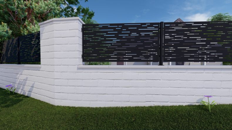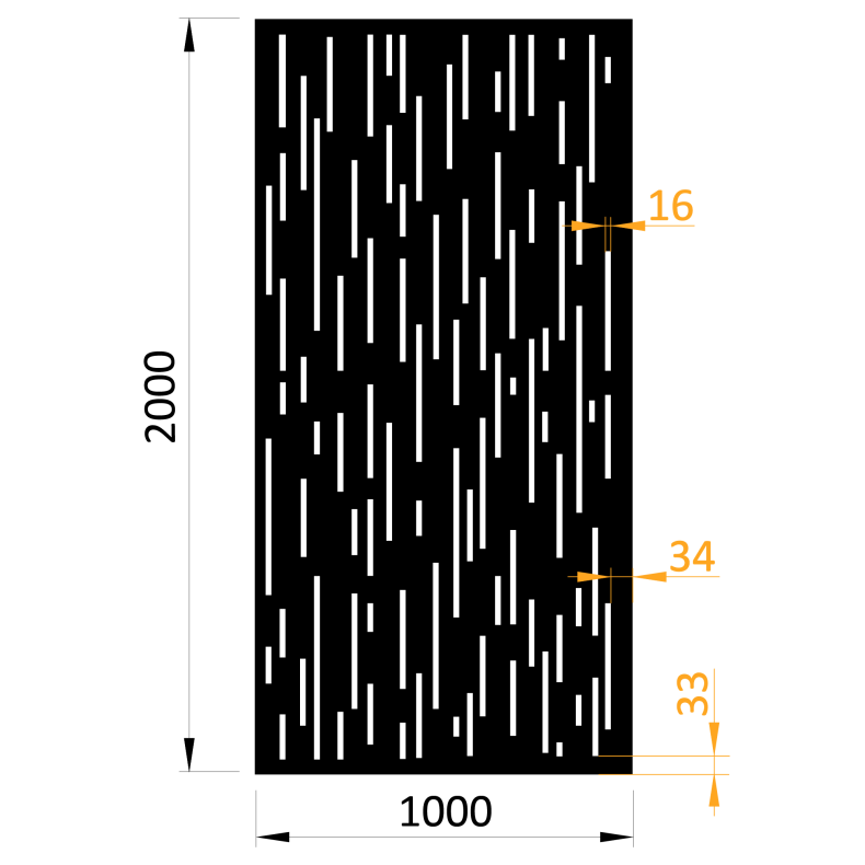 Designová kovová výplň, laserem vypálený vzor 8312, rozměr 1000x2000x2,0 mm, výška výpalku 15,5 mm