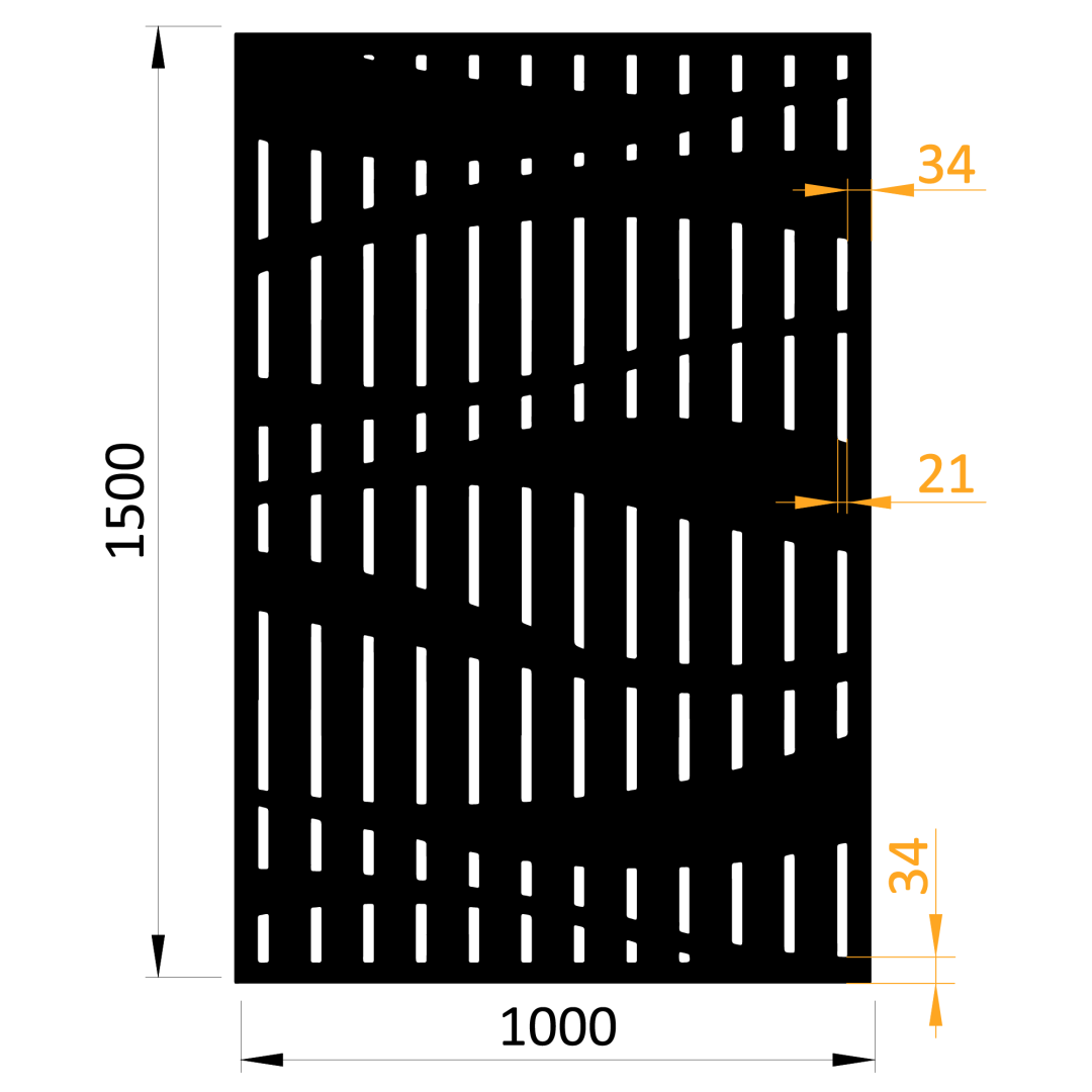 Designová kovová výplň, rozměr plechu je 1500x1000 mm. Šířka rámovaní (okrajů bez výpalu) je 35mm.