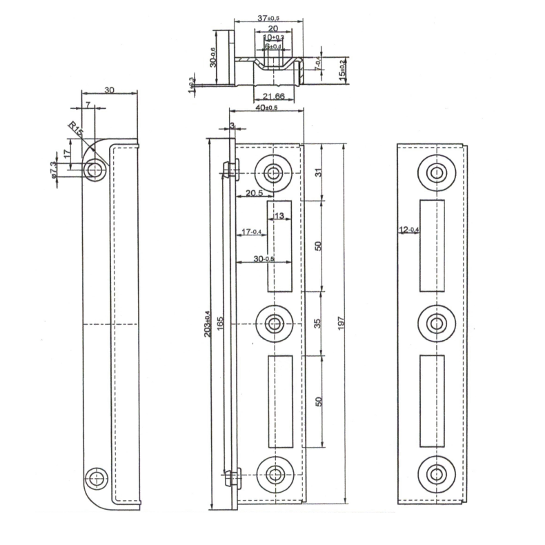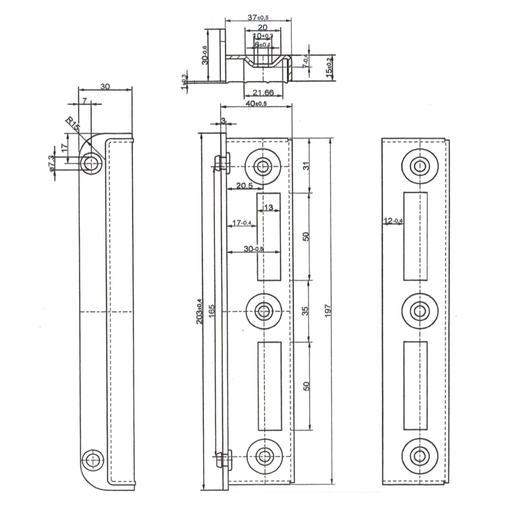 Doraz pro branku z profilu 30x30 mm, 197x30x40 mm, pravý / levý, pozinkovaný povrch