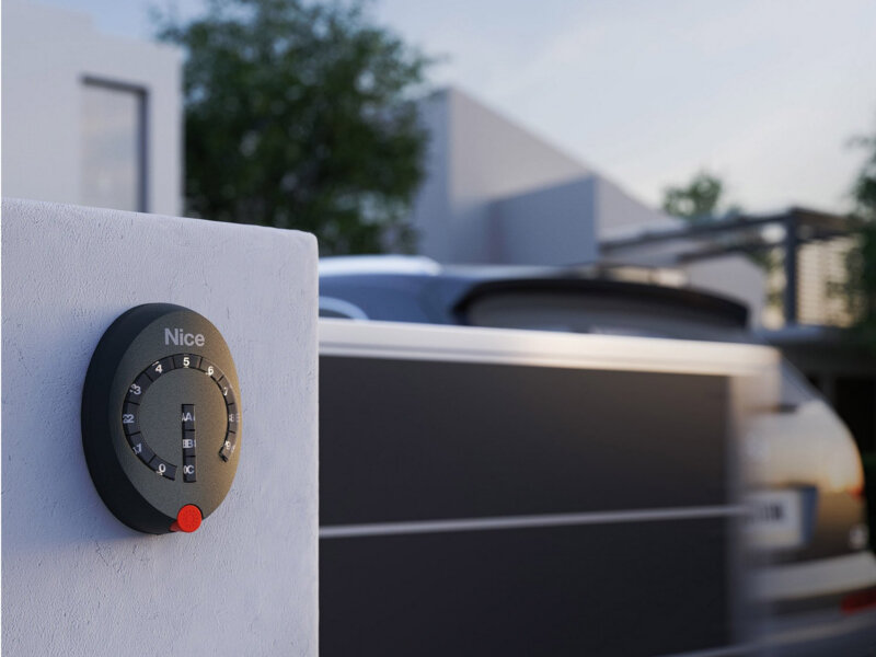 Bezdrátová klávesnice Nice Home, kompatibilní s pohony Mhouse a Moovo, podsvícené tlačítka, tříkanálová, plovoucí kód 433,92MHz, antivandal, vhodná pro instalaci do exteriéru nebo interiéru.