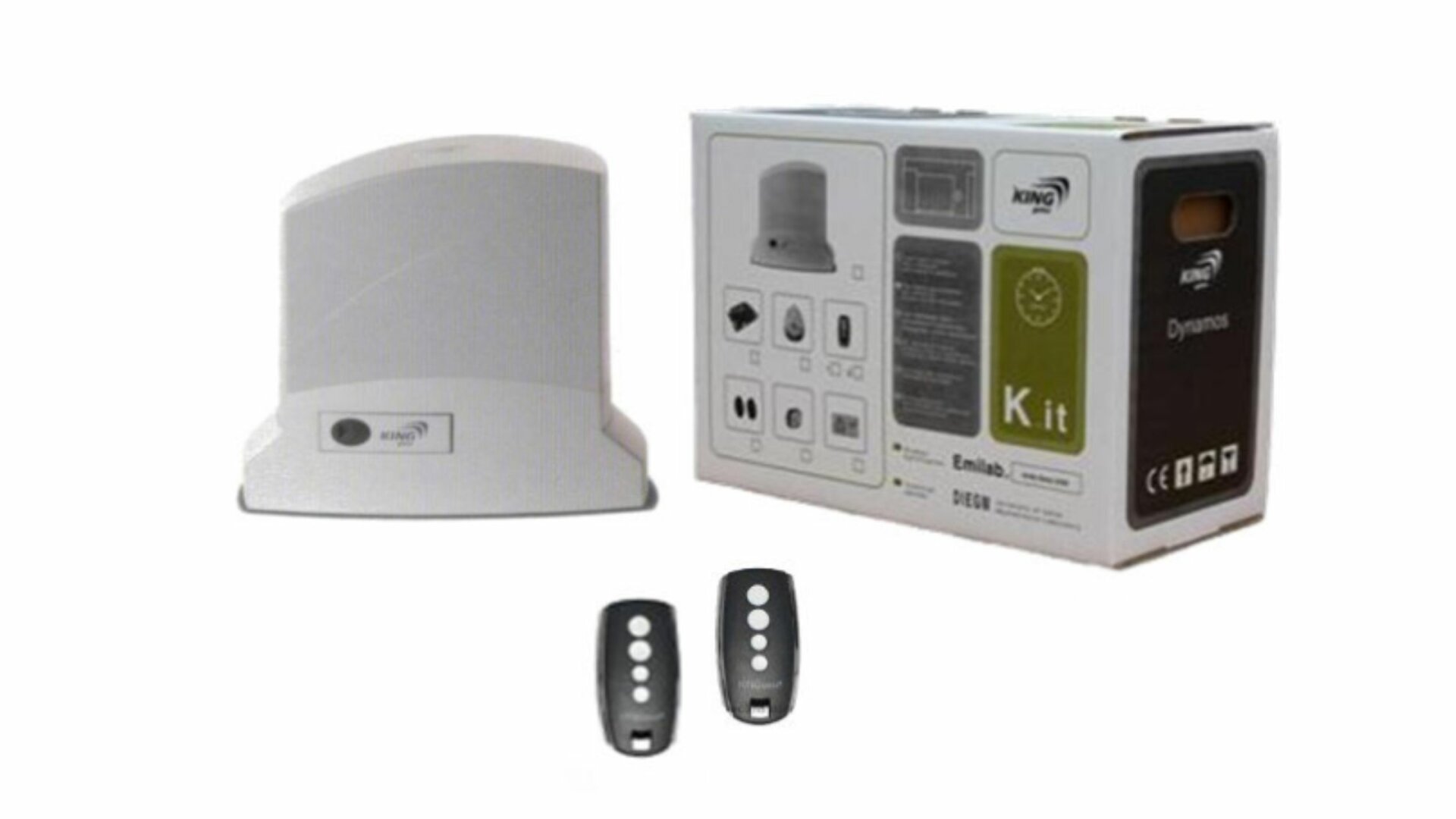 Very Light kit 24V 600kg: (1) 23S054 DYNAMOSF24/600R01 fast version, built in control unit, mech. limit switches (2) 10S001 STYLO4K radio transmitter Rolling code 4 channels, 433,92 MHZ
