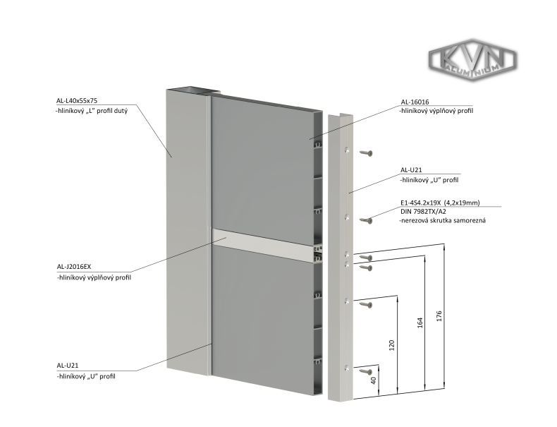 Lamelu AL-J2016EX-6 lze montovat jako výplň v kombinaci s U profily AL-U21-6. Na našich U profilech najdete vodicí drážky, které Vám pomohou lamely namontovat v požadovaném úhlu a v přesně naměřené vzdálenosti mezi jednotlivými lamelami.