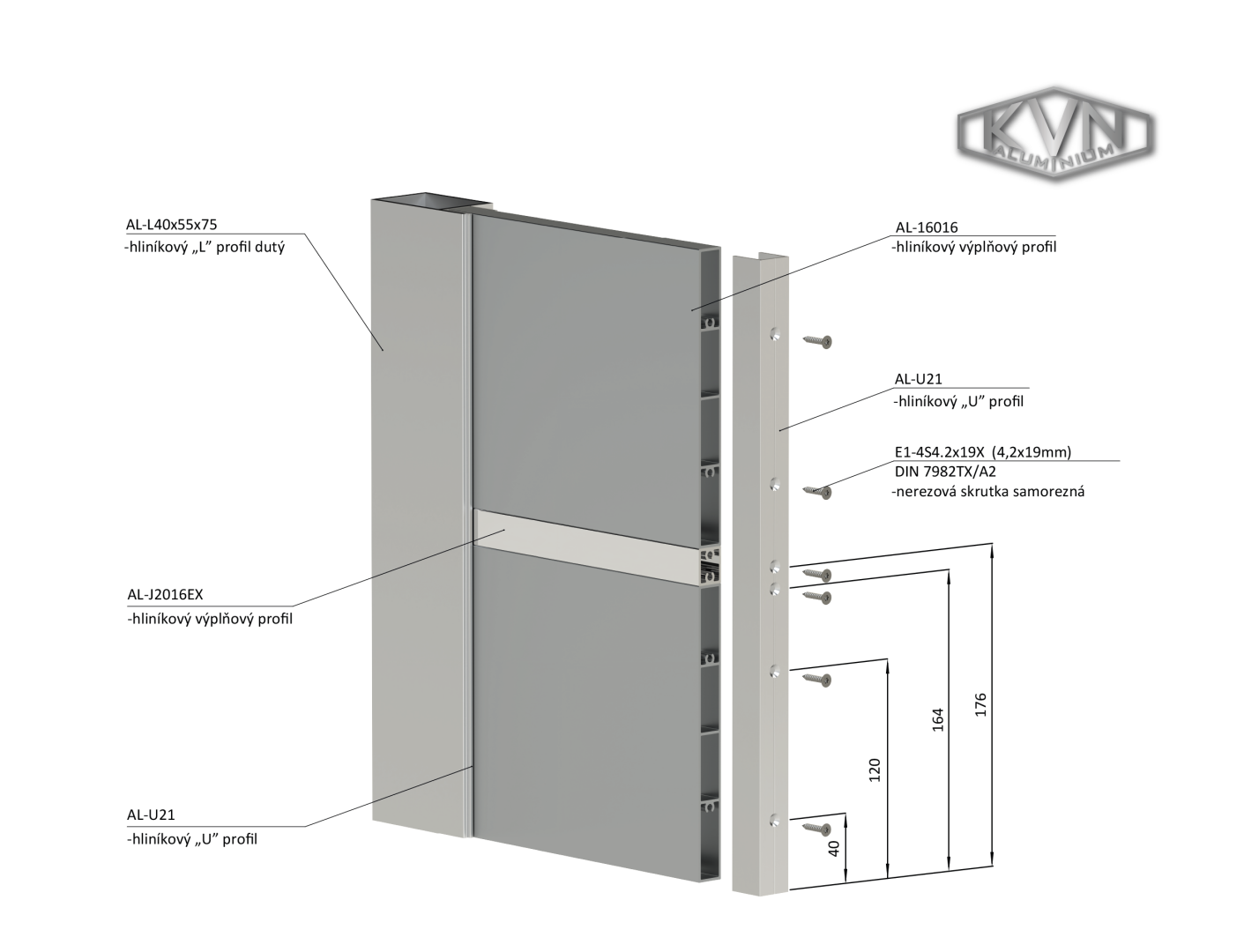 Lamelu AL-J2016EX-6 lze montovat jako výplň v kombinaci s U profily AL-U21-6. Na našich U profilech najdete vodicí drážky, které Vám pomohou lamely namontovat v požadovaném úhlu a v přesně naměřené vzdálenosti mezi jednotlivými lamelami.