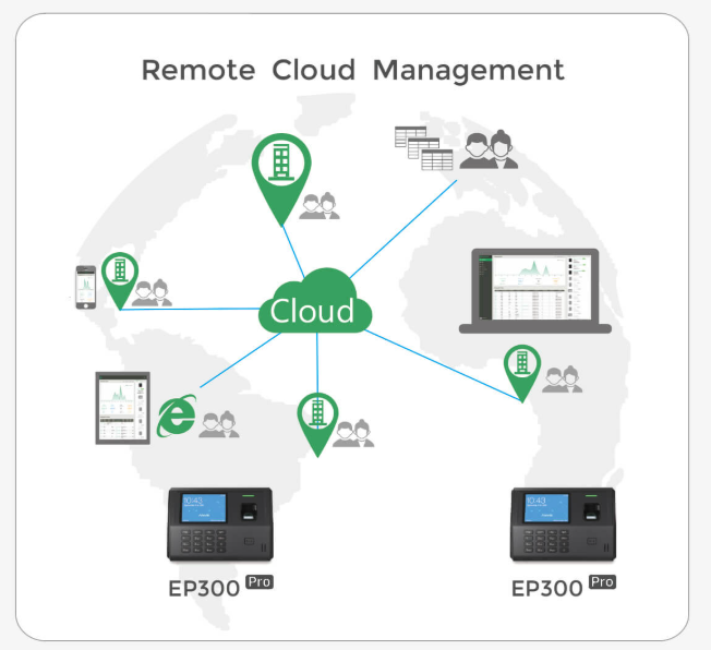 EP300 Pro je docházkový terminál nové generace otisků prstů založený na platformě Linux a podporuje cloudové aplikace. Pyšní se 3.5palcovým barevným LCD displejem a plně kapacitní klávesnicí spolu s dotykovým optickým snímačem otisků prstů. Funkce webového serveru umožňuje snadnou samosprávu zařízení a WiFi a Bluetooth zajišťuje flexibilní aplikaci zařízení. Velmi jednoduchý přenos dat pomocí USB flash disku.