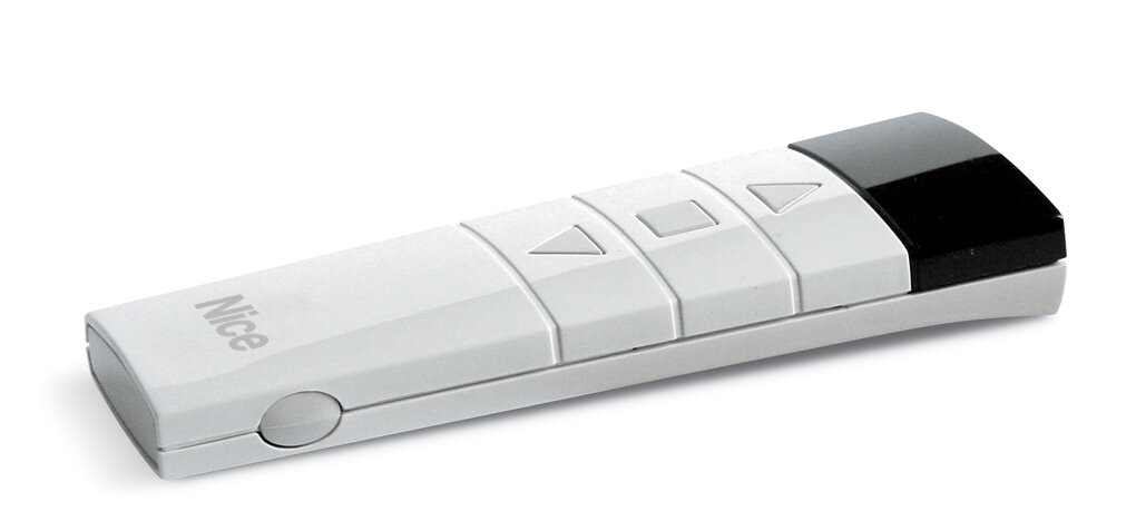 Ergonomický vysílač s plovoucím kódem pro ovládání řídící jednotky, intuitivní ovládání, funkce NAHORU-DOLU-STOP, módy "vítr" a "slunce a vítr", frekvence 433.92 Mhz, lithiová baterie. Tento model je nahrazen novým ovladačem P1