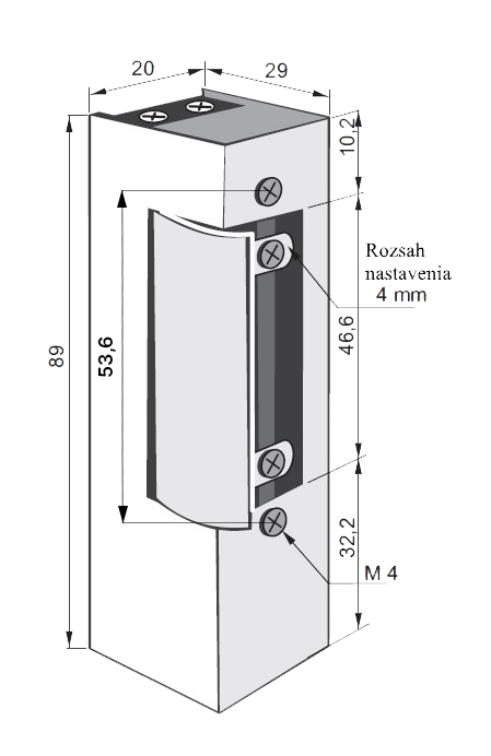 Elektrický zámek pro dálkové otevírání dveří a branek, bez lišty, použitelný jako levý i pravý. Zámek má seřiditelnou západku.