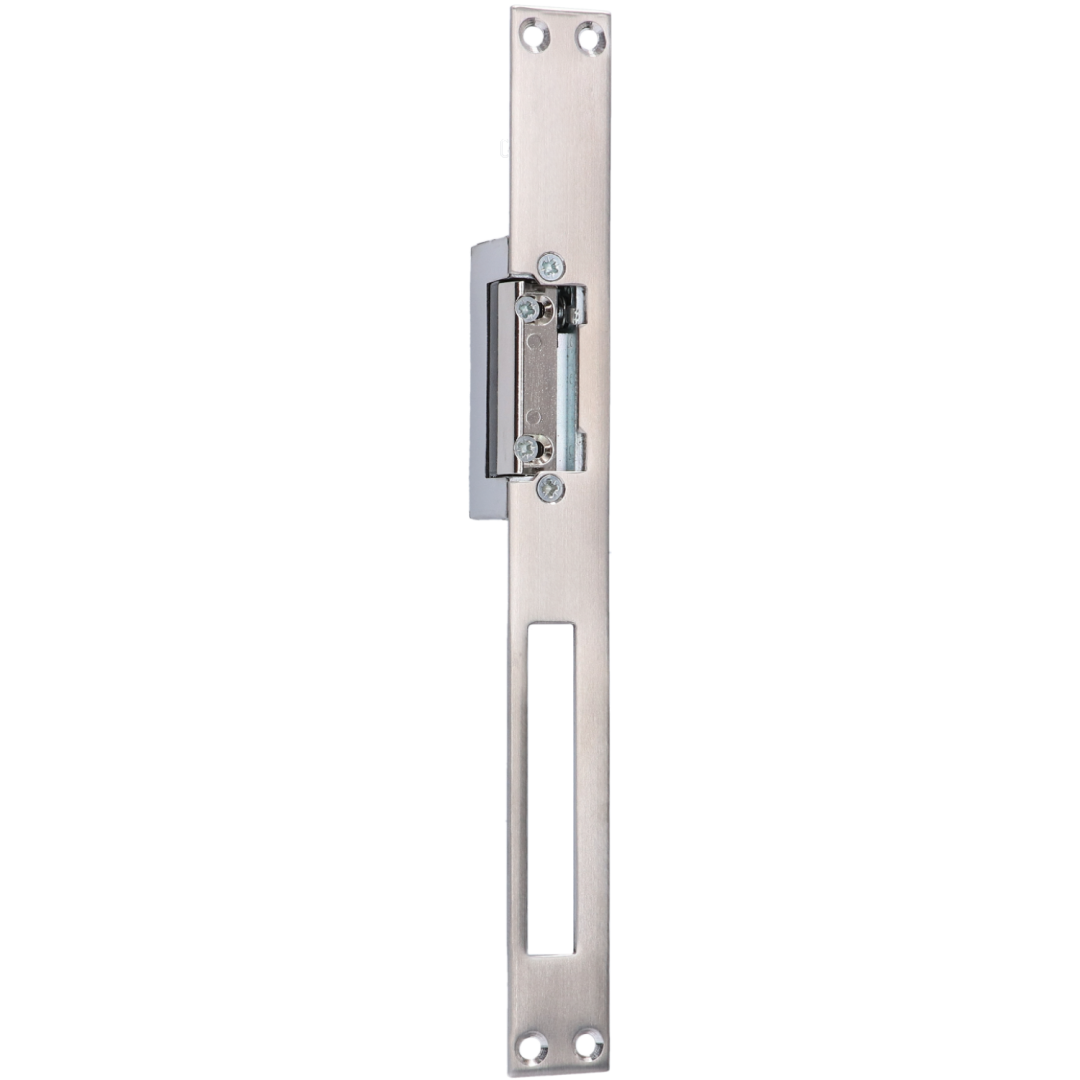EZ333 - elektrozámek pro dveře a branky, s nerezovou lištou, s odblokováním, napětí 12-24 V, AC/DC. Vhodný na rozteč zámku 72 mm i 90 mm, univerzální pro pravé i levé dveře a branky. Elektrozámek s… více v popisu produktu