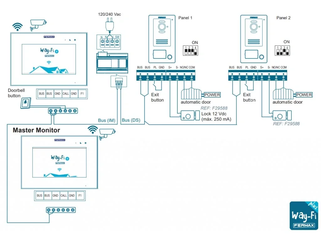• Kompatibilita s FERMAX IP Wifi CCTV kamerami (Ref. 9986): Podporuje až 4 kamery na instalaci. Není kompatibilní s jinými modely fotoaparátů.