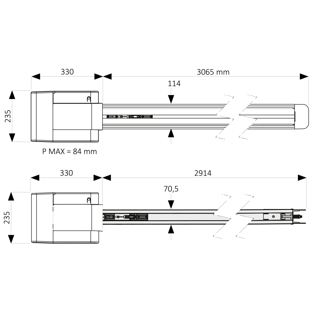 Stejná hlava pohonu pro vodicí lišty s LED a bez LED.