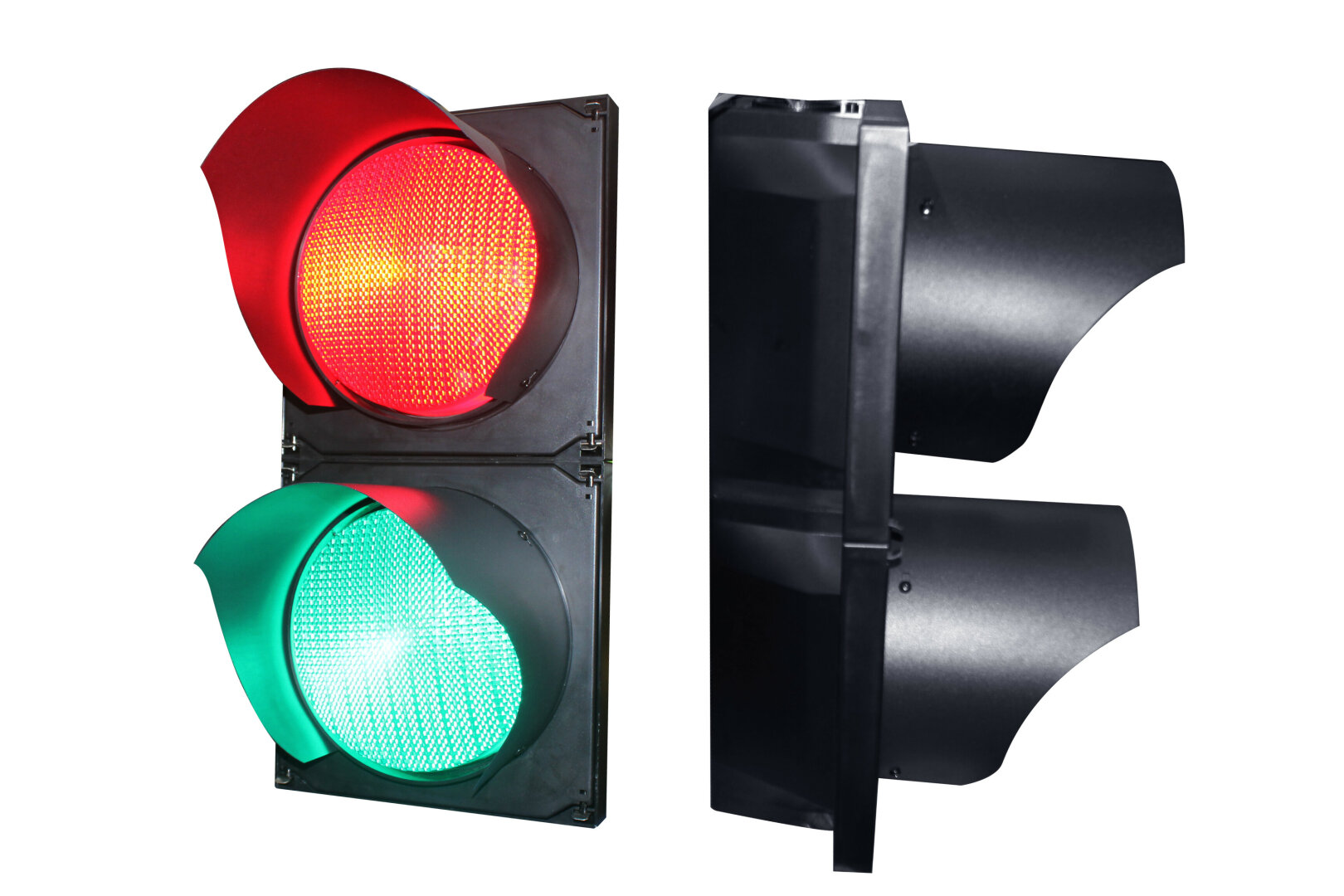 Semafor je vybaven dvěma komorami – červenou a zelenou, které zajišťují přehlednou a bezpečnou signalizaci například při řízení jednosměrných vjezdů, výjezdů, automatických bran nebo parkovacích systémů.