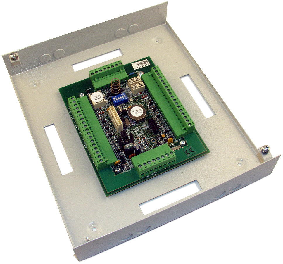 Řídicí jednotka pro dvě čtečky (dvě dveře jednostranně nebo jedny dveře oboustranně), kapacita 1000 karet, 10000 událostí. Komunikace RS-232 nebo RS-485. Včetně instalačního kovového krytu na povrch.
