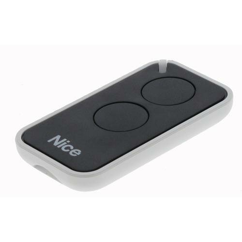 INTI2 - černý miniaturní dvoukanálový dálkový ovladač Nice s plovoucím kódem. Dodávka včetně poutka na klíče. Ovladač nahrazuje starší ovladače FLO2R, FLO4R, VERYVR, atd..