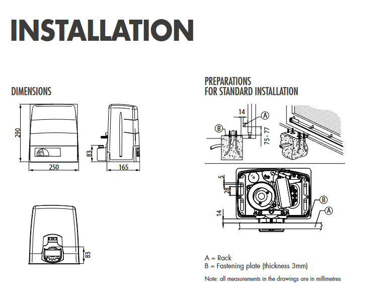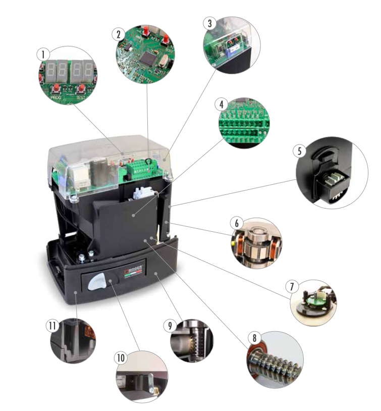 Jedná se o kvalitní pohon Italského výrobce pohonů s dlouhodobou zkušeností ve výrobě pohonů pro brány a vrata. Tělo pohonu je vyrobeno z kvalitních materiálů, které zajistí maximální životnost pohonu ve všech klimatických podmínkách. Všechny díly v převodovce jsou železné.