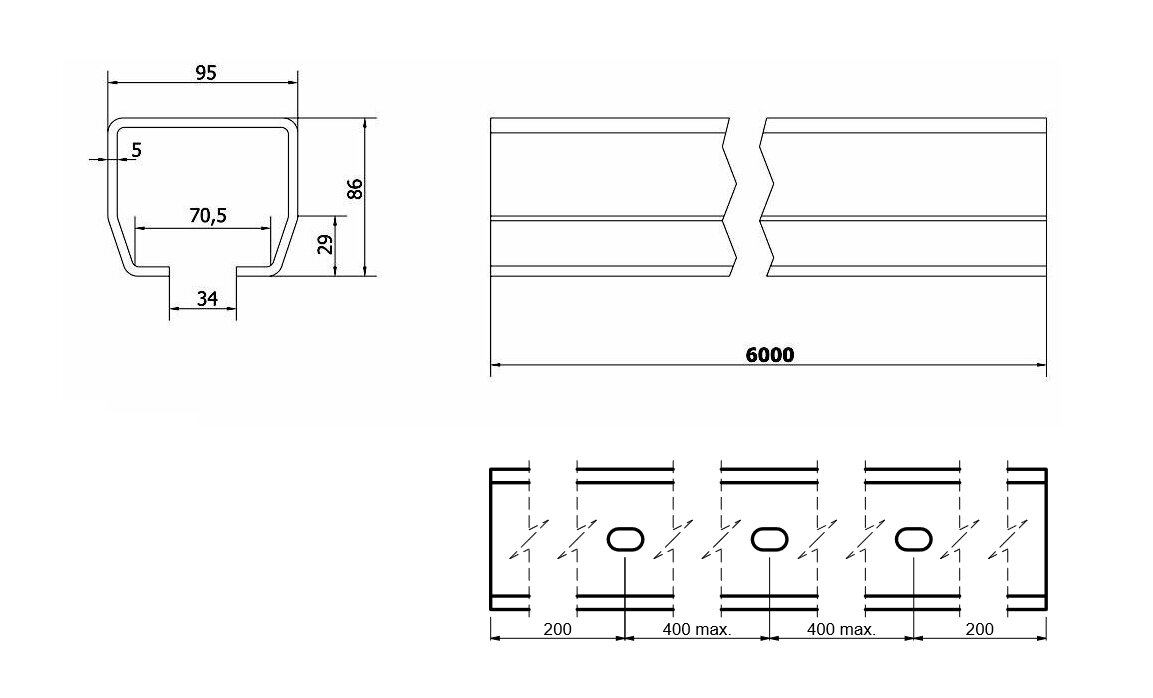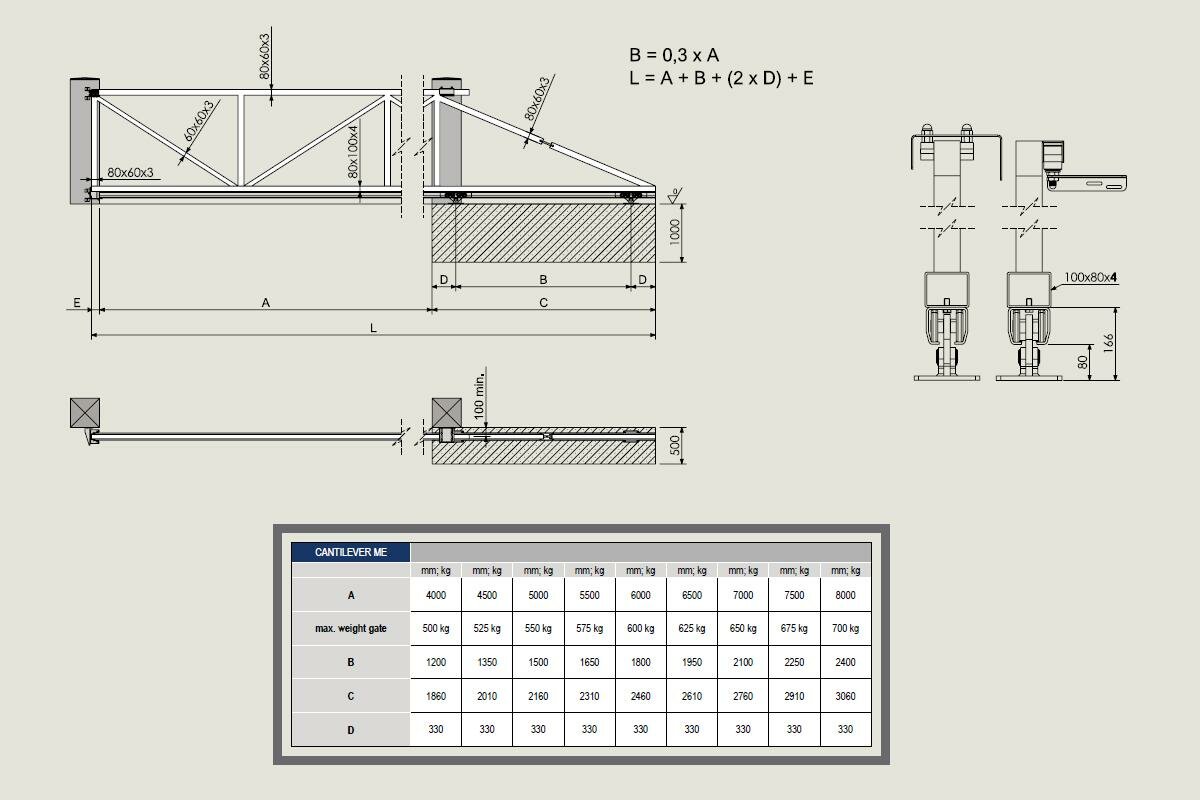 Např.: Pro bránu s průjezdem 7 m a maximální hmotností 600 kg je A = 7.000 mm a C = 2.460 mm, součet 9.460 mm, potřebujete tedy celkem 10 m C profilu. Libovolné množství dalšího potřebného C profilum si snadno zvolíte v rámci příplatkového zboží při vkládání do košíku.