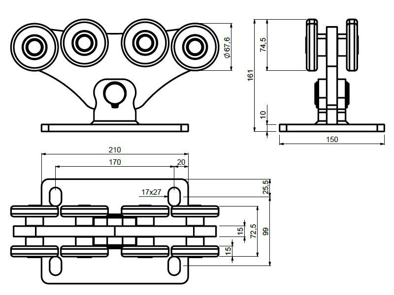 Kvalitní sestava pro samonosnou posuvnou bránu do hmotnosti až 700 kg a průjezdu až do 8 m. Maximálního výnosu - tedy 8 m, lze dosáhnout přikoupením dalšího C profilu v rámci příplatkového zboží při vkládání do košíku. Nyní akce - SLEVA 500 Kč při nákupu kování a pohonu pro posuvnou bránu. Více informací o akci v najdete popisu produktu.