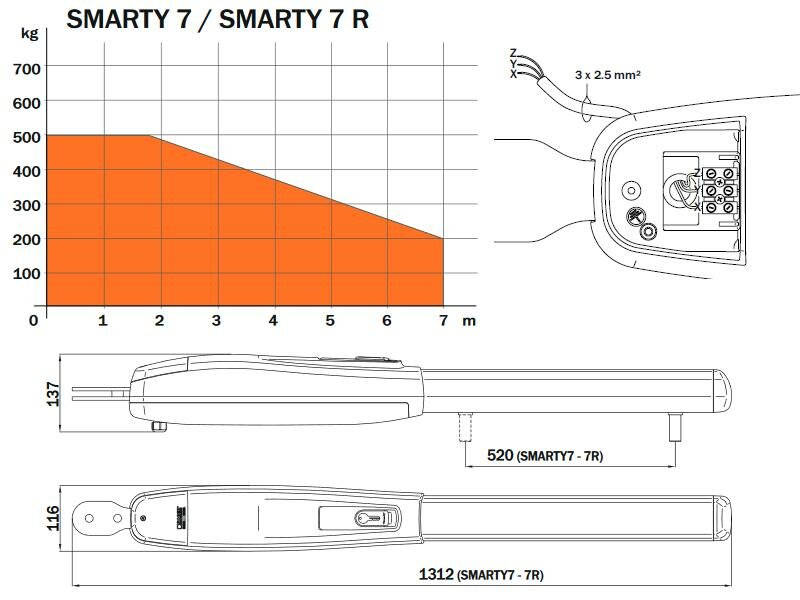 KIT-SMARTY7 - sada pohonu s technologií Brushless pro šířku až 7 m jednoho křídla. Sada výkonného pohonu pro nepřetržité non-stop provozy. Garantovaně zvládne 1000 cyklů denně. Silný kroutící moment. Nová technologie díky které je dosaženo maximální účinnosti motoru a téměř žádného zahřívání motoru. Díky tomu lze použít pohon v nepřetržitém provozu a motor má velký kroutící moment. Mechanický doraz při otevření i zavření!