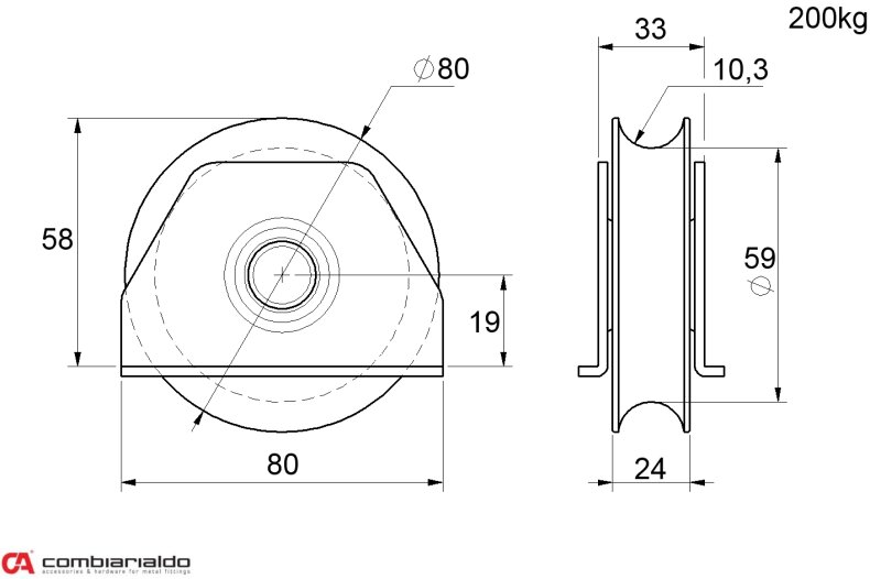 Kolečko od italského výrobce Combi Arialdo. Povrchová úprava- pozink. Použití pro posuvné brány.