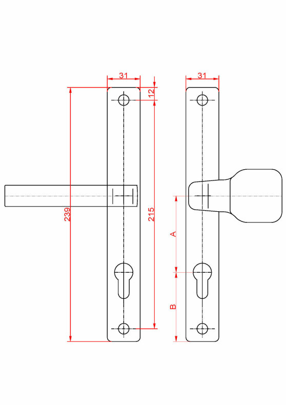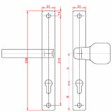 Klika AL, s koulí, rozměr štítku 239 x 32 mm, rozteč 90 mm, černá prášková barva vypalovaná, s otvorem pro stavební vložku, pár