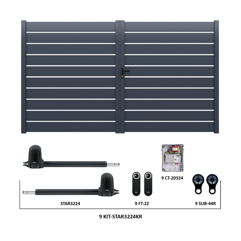 Tento produkt nabízíme jako kompletní set včetně automatizace - sady 9 KIT-STAR3224KR od KEY Automation pro pohodlné a bezpečné dálkové ovládání křídlové brány.
