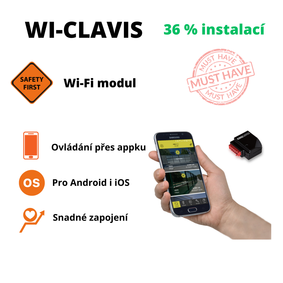 Chtěli byste pohon ovládat pohodlně a na dálku ze svého telefonu? Pak stačí, když si dokoupíte Wi-Fi modul CLAVIS. Ovládání je poté možné odkudkoliv, kde máte přístup k internetu. Spolehlivě funguje pro Android i iOS.