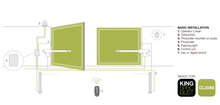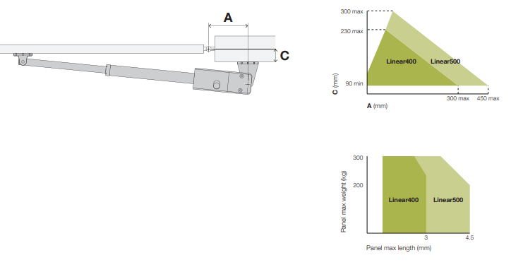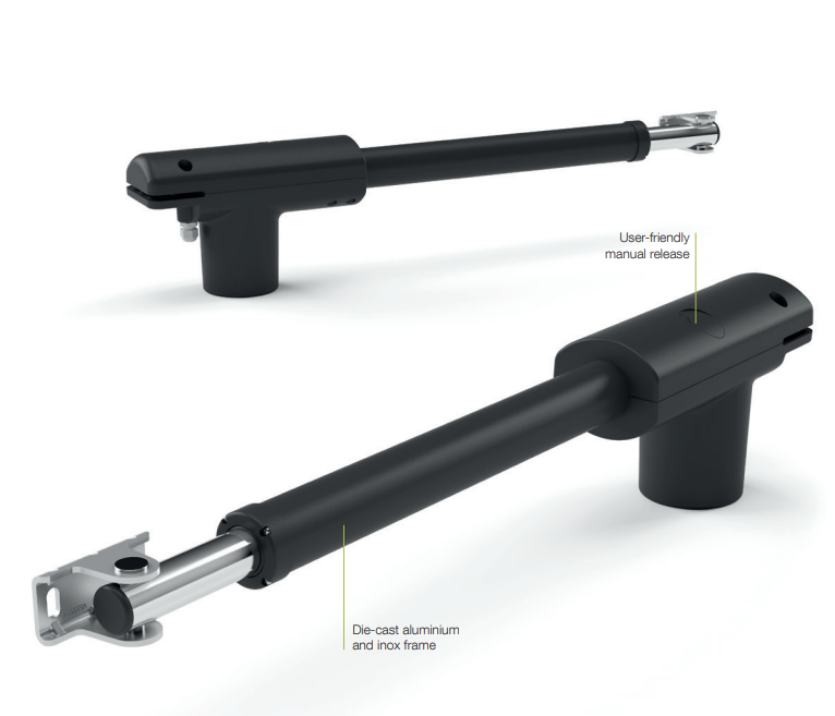 Linear50024Kit je špičkový pohon pro dvoukřídlé brány určen i pro intenzivnější provozy. Sada pohonu pro křídlovou bránu do 4,5 m šířky jednoho křídla a hmotnosti jednoho křídla maximálně 250 kg (závisí na délce křídla).