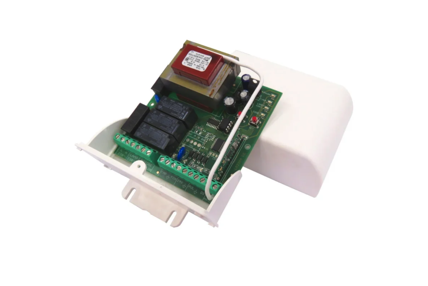 Elektronická řídící jednotka pro rolety a zdvihací vrata se zabudovaným radiovým přijímačem. Koncový spínač otevírání a zavírání.