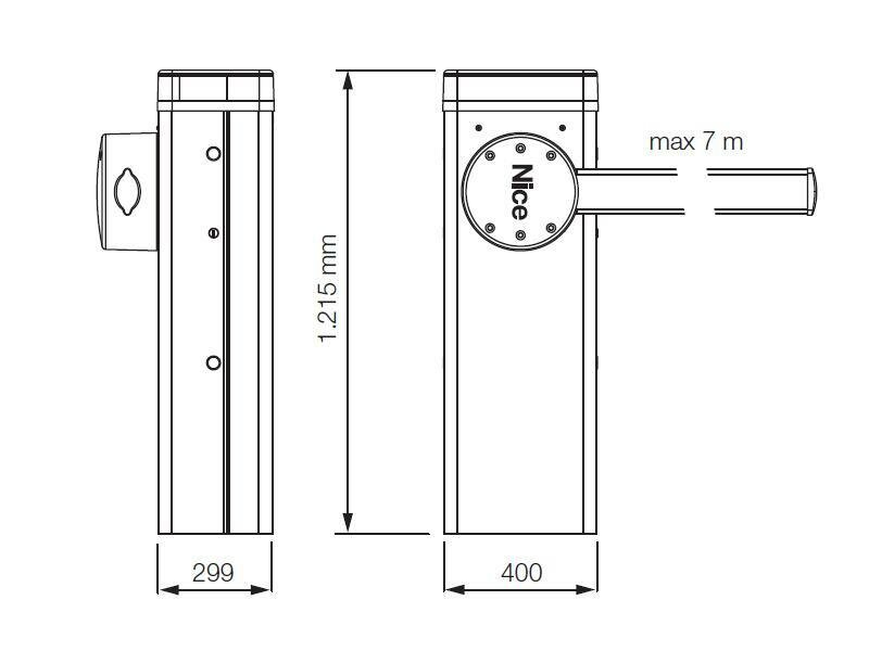 Sada rychlé elektromechanické závory pro intenzivní provoz s ramenem 4,15 m. Závora je určena pro privátní, veřejné a průmyslové vjezdy. Disponuje možností plynule nastavit rychlost zdvihu a citlivost antinárazového zařízení. Skříň závory je vyrobena z pozinkované oceli, která je galvanicky zinkována s komaxitovým nástřikem.