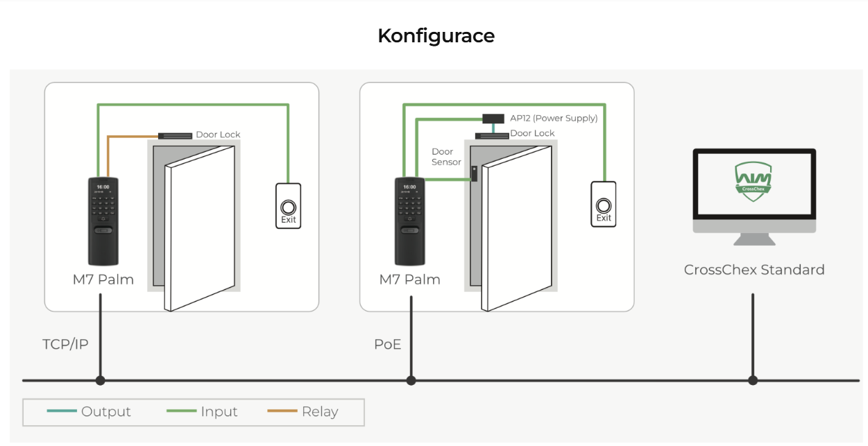 | Pověření | Palm Vein, RFID karta, PIN kód | |