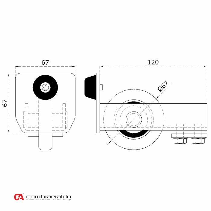 Nerezové náběhové kolečko pro samonosnou bránu Combi Arialdo MEDIO, nerez bez povrchové úpravy /AISI304, 98*98 mm